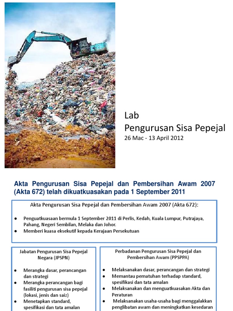 With a period of one month we were to carry out a campaign to raise public awareness on solid waste disposal with the right method. Jabatan Pengurusan Sisa Pepejal Negara. Fauzana binti abdullah penolong pengarah kanan.